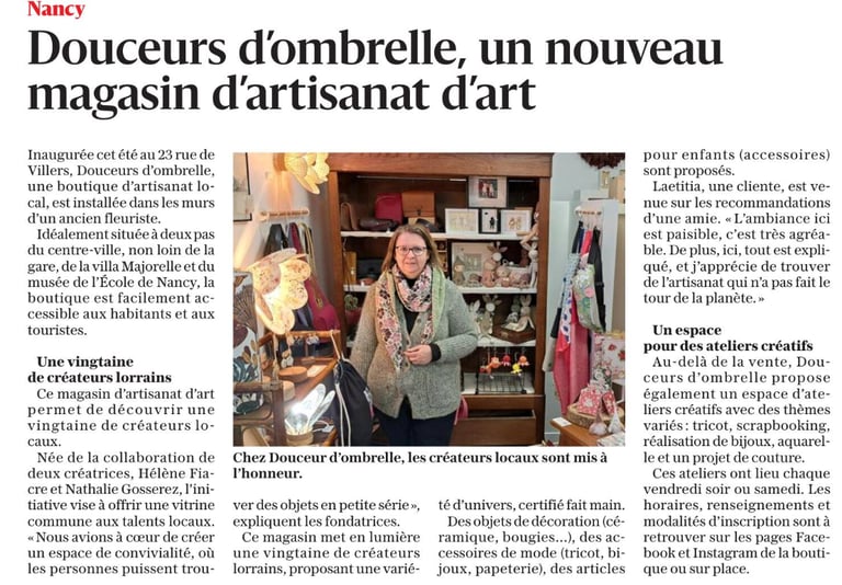 Mes créations sont disponibles au sein de la boutique d'art et d'artisanat partagées par 25 créatrices et créateurs lorrains :