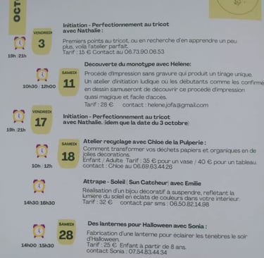 L’automne s’installe doucement, et avec lui, l’envie de créer, d’apprendre et de partager.